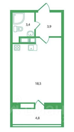 КВАРТИРА-СТУДИЯ, общей площадью 30 кв.м, с большой лоджией.