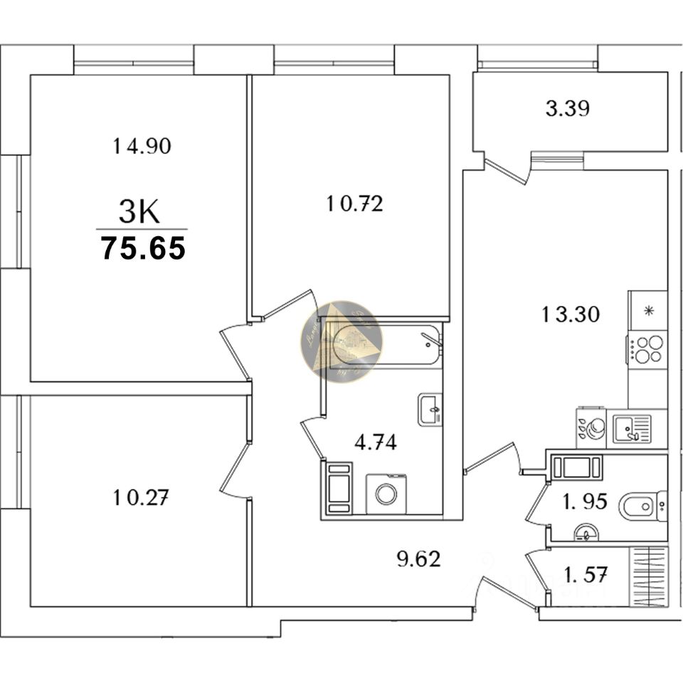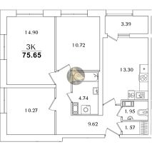 - Общая площадь квартиры 75.65 м2