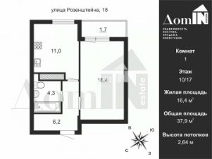 Арт. 120526970 Предлагается к продаже однокомнатная квартира с евроремонтом в ЖК комфорт-класса "Панорама 360".