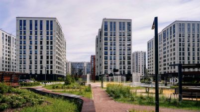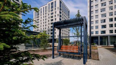 Огромная дворовая зона: детские и спортивные площадки, зоны для прогулок, места отдыха — подойдет как семьям, так и тем, кто любит спокойствие и зелень.