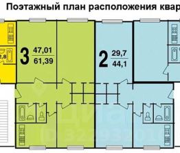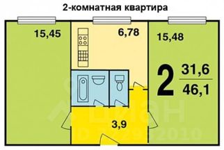 Общая площадь квартиры составляет 46.1 кв. м., жилая площадь 30.96 кв. м., кухня - 6.78 кв. м., коридор - 3,9 кв.м.