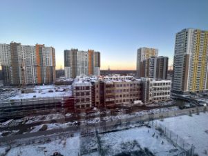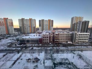Общая площадь квартиры 33 м2, комната 14,5 м2 с выходом на большой балкон, кухня 9,6 м2 , совмещённый санузел. Bид из окoн во двор! не на КАД! Квартира очень тёплая. В доме три лифта. Хорошие ,тихие соседи.