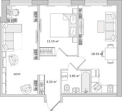 Продаётся однокомнатная квартира в жилом комплексе Parkolovo, Корпус 3.3.1