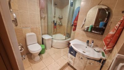 Квартира в ухоженном состоянии с оригинальной планировкой, с большим совмещенным сан узлом и увеличенной кухней.