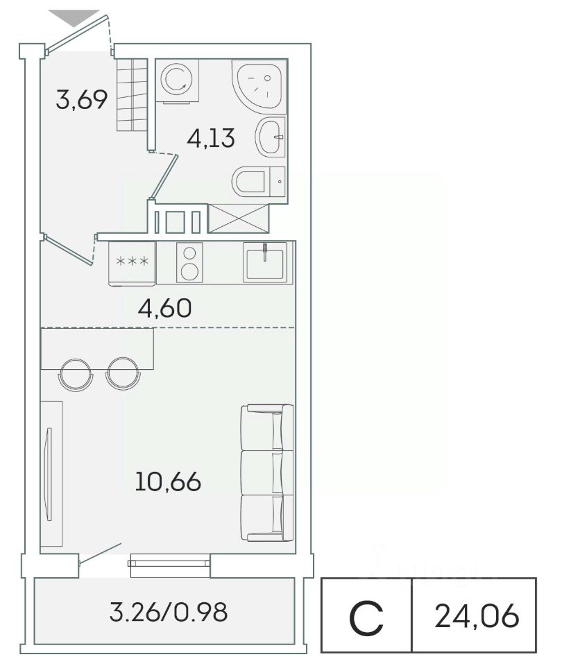 Продаётся студия в сданном доме (Екатерининская, 11 (Корпус 4)), срок сдачи: III-кв. 2024, общей площадью 23.1 кв.м., на 8 этаже. Расположение, транспортная доступность