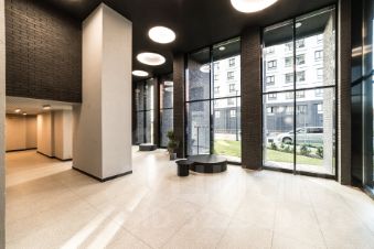-видеонаблюдение, консьерж, большая колясочная доя хранения колясок, сноубордов, велосипедов