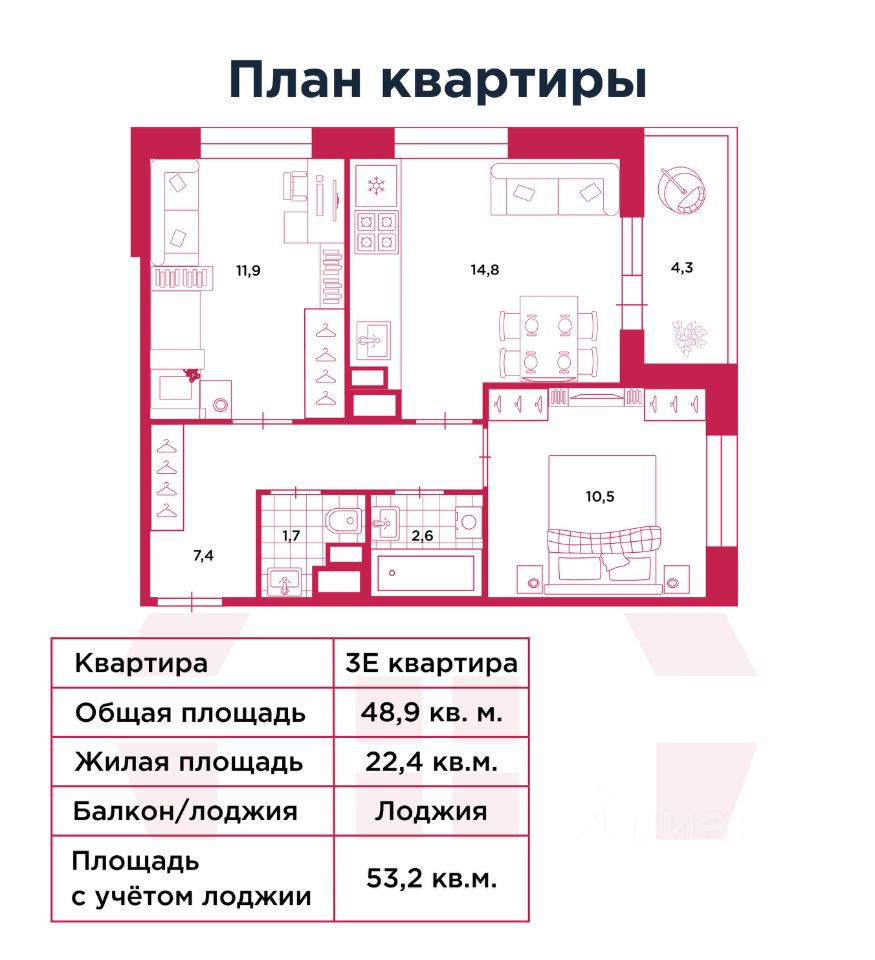 Двушка с удобной планировкой в апарт-комплексе ArtLine