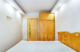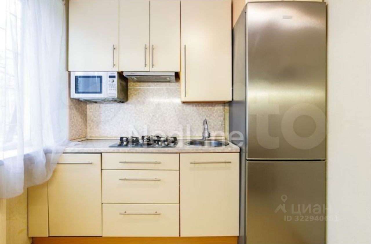 кровать, диван, встроенные шкафы, стол, холодильник, стиральная и посудомоечная машины.