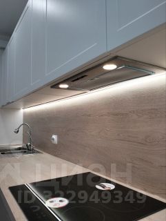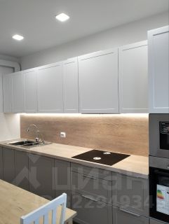 Просторная Кухня 13.5м2 с современным новым кухонным гарнитуром (из техники: встроенные варочная панель, духовой шкаф,СВЧ печь,вытяжка). Вся мебель и техника остаются.
