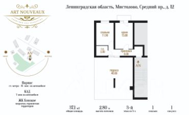 Квартира общей площадью 37,2 кв м, кухня 14 кв. м, с выходом на французский балкон, просторная жилая комната 12 кв.м. Фишкой квартиры является терраса (эксплуатируемая кровля) площадью 40 кв.м.
