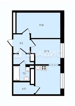 -Общая площадь квартиры 57 м², жилая 28,8 м²;