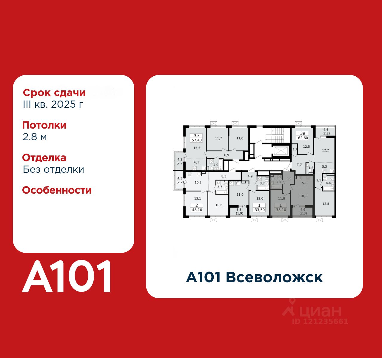 ГК "А101" - крупный инвестиционно-строительный холдинг, занимает 6-е место по объему строительства в России (по данным "Единого ресурса застройщиков" на 2023 год). НКР присвоило ГК "А101" кредитный рейтинг A+.ru, подтверждая его надежность и финансовую устойчивость для завершения строительства ЖК.