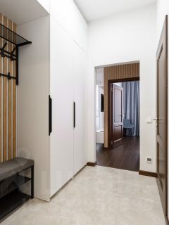 Паркетная доска на полу , двери из массива, матовые натяжные потолки, система умный дом, видеодомофон, теплые полы в прихожей и санузле, качественная сантехника. Всё новое и безупречное.