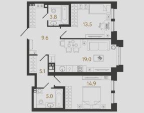 Площадь кухни19 м²
