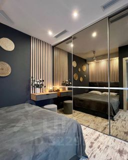 - Спальня - комната без окна с профессиональной скрытой системой вентиляции. Большой шкаф с раздвижными зеркальными дверьми, система хранения вещей под встроенной кроватью с подъемным механизмом.
