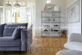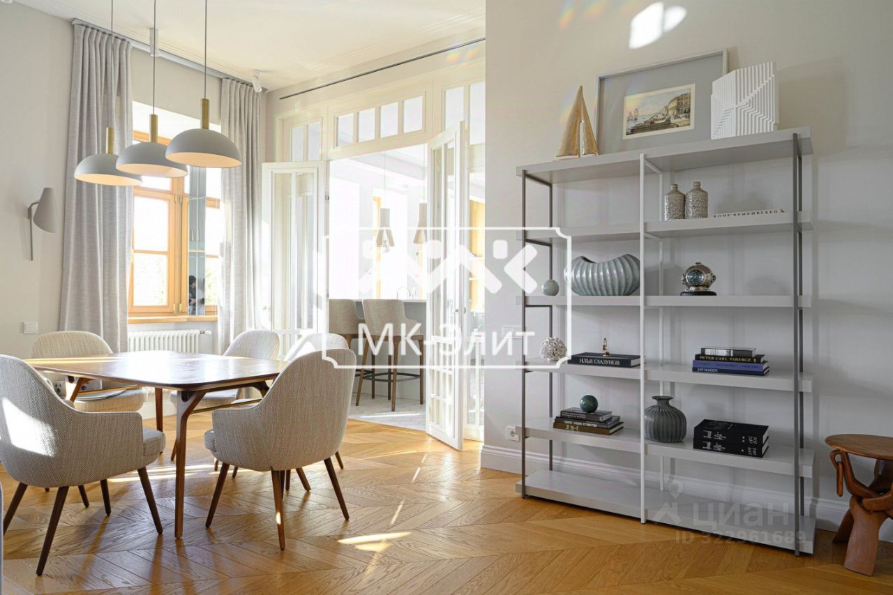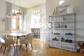 В продаже апартаменты площадью 136 м² расположенные на 4 этаже, с прямым видом на Конногвардейский бульвар, а в зеркалах виден купол Исаакиевского собора.