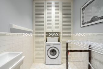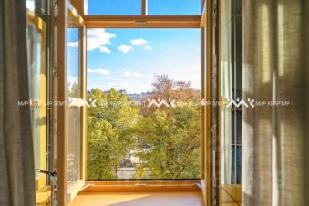 Дизайн проект апартаментов выполнен с максимальным вниманием к деталям. Паркет из дуба в рисунке французской ёлки, все каменные полы с подогревом, приточно-вытяжная вентиляция с кондиционированием, два санузла, множество мест для хранения и постирочная. Высота потолков 3,2 м.