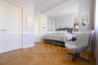 Зона кухни-гостиной площадью 54 кв.м. обращена в сторону зелени бульвара, на юг, и залита солнцем. Мастер спальня площадью 19 кв. м с просторным санузлом и большой гардеробной обращена в тихий внутренний двор. Из мастер спальни есть выход на террасу с уличной мебелью и живыми цветами - лучшее место для встречи белых ночей. Вторая спальня площадью 13.8 кв.м. также обращена во внутренний двор.