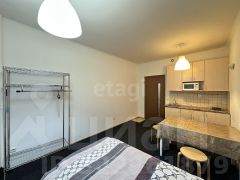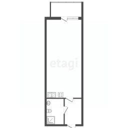 Общая площадь квартиры — 21,1 кв. м, расположена на 11 этаже 20 -этажного монолитного дома, построенного в 2018 году. Окна квартиры выходят во двор. Жилая площадь составляет 14 кв. м, кухня — 5 кв. м. Высокие потолки 2,7 м, создают ощущение простора.
