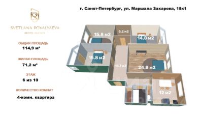 Пpoдаётcя 4-комнaтная квaртирa 114,9 м2 .