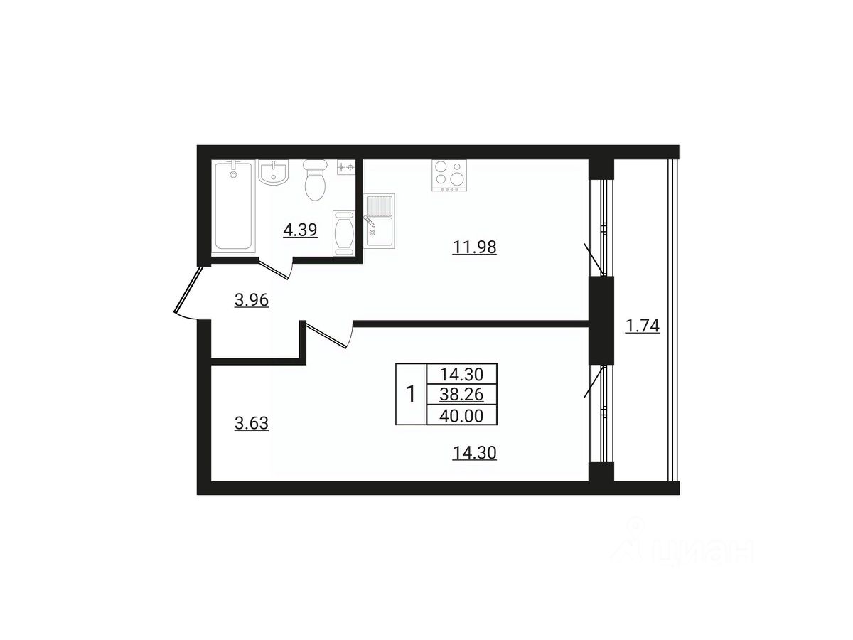 Общая площадь40 м²