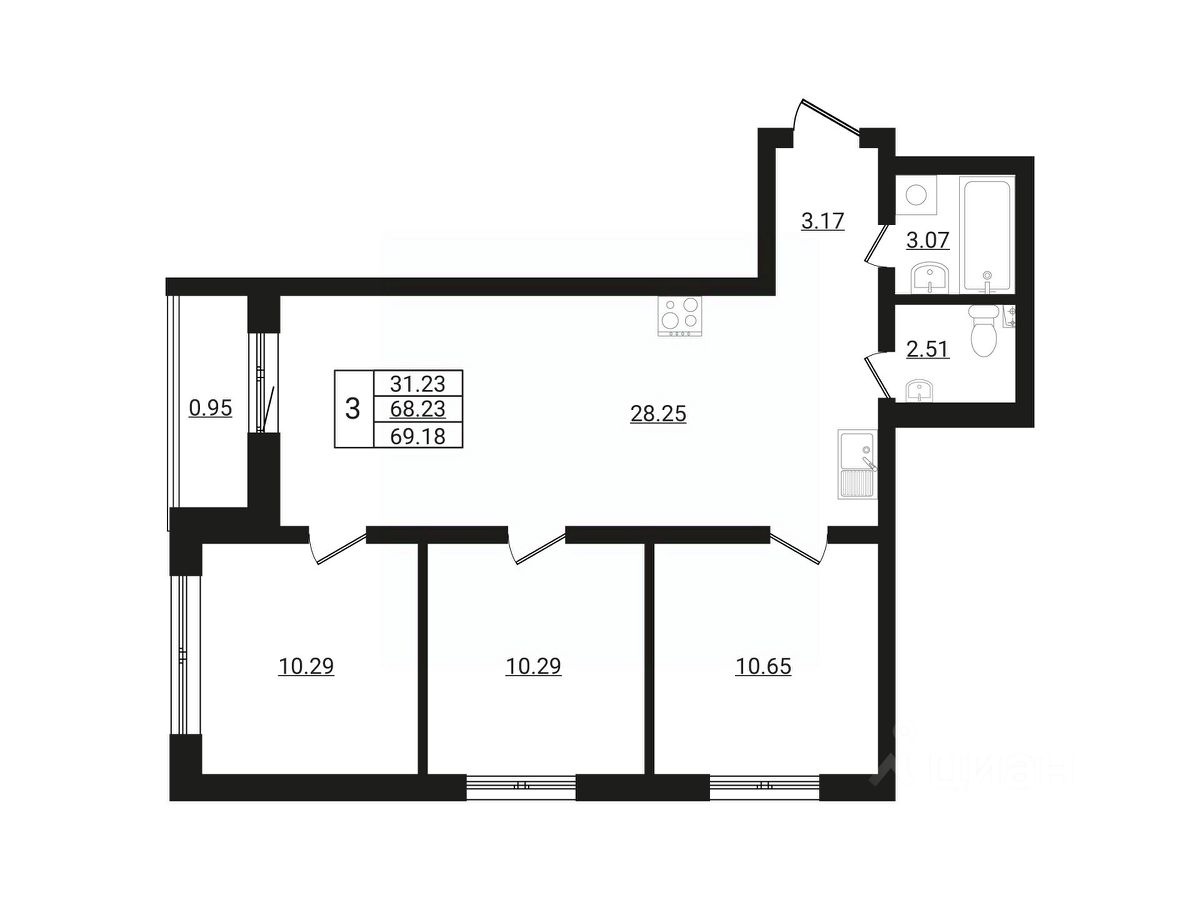 Общая площадь69,18 м²