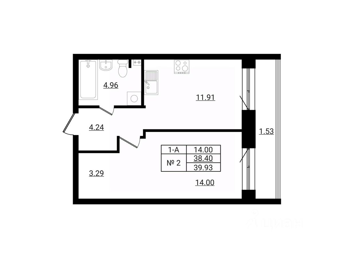 Общая площадь39,93 м²