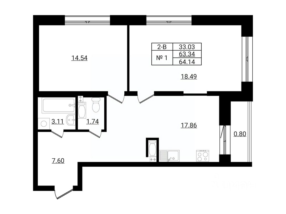 Общая площадь64,14 м²