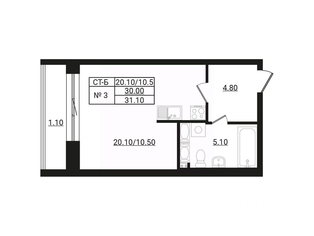 Общая площадь31,1 м²