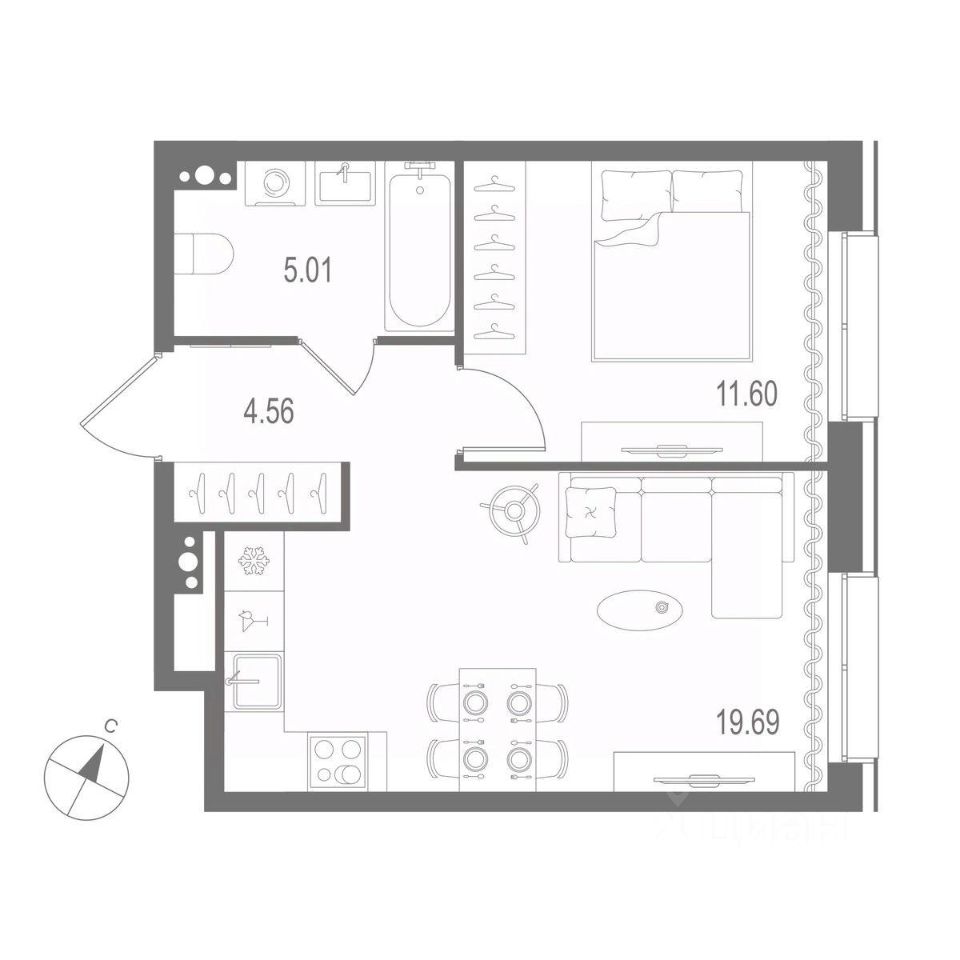 Жилая площадь11,6 м²