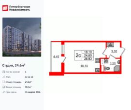 Продается просторная студия от застройщика в жилом комплексе "Бионика Заповедная" в динамичном Приморском районе.