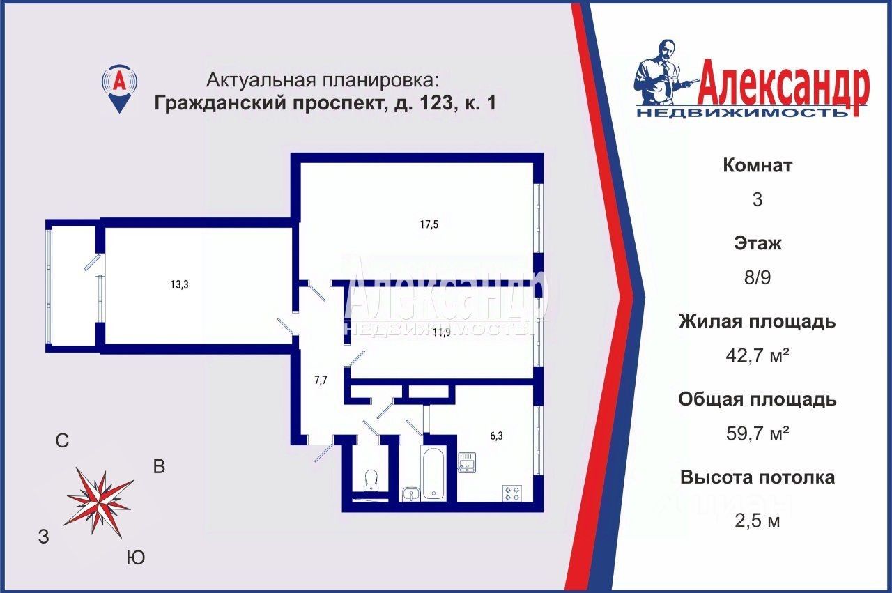 1704779 В продаже просторная трёхкомнатная квартира в пешей доступности от метро Гражданский проспект. Эта квартира создана для Вашей семьи! Представьте: Вы выходите из дома и уже через семь минут Вы спускаетесь в метро и можете добраться без пробок в нужное Вам место нашего замечательного города-Санкт-Петербург. Квартира трёхкомнатная, у каждого члена семьи будет своё личное пространство. Вся инфраструктура развита вокруг Вашего дома, детские сады, школы, сетевые магазины, пункты выдачи маркетплейсов, остановки общественного транспорта, всё для комфортной жизни современного человека под рукой. Звоните прямо сейчас, не откладывайте на завтра, чтобы не упустить шанс приобрести хорошую квартиру по выгодной цене. Звоните, согласуем удобное время просмотра и ответим на все интересующие Вас вопросы.