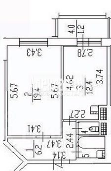 Площадь квартиры: 41.5 м2+застеклённый балкон 4 м2.