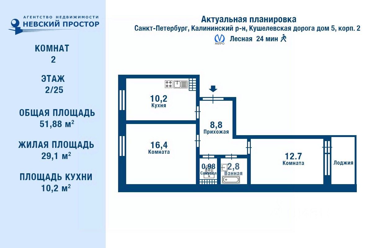 Арт. 120854419 Уютная двухкомнатная квартира в ЖК "Кантемировский" - идеальное место для комфортной жизни