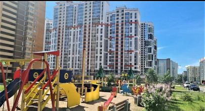 Вас порадует благоустроеная придомовая территория с оборудованными детскими игровыми, где ваши дети смогут весело проводить время. Рядом с домом расположены входы в подземный и наземный паркинги