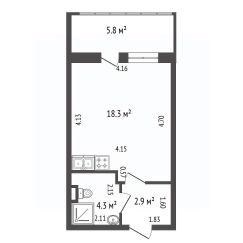 Просторная застеклённая лоджия (5.8 м²) — идеальное место для зоны отдыха или кабинета.