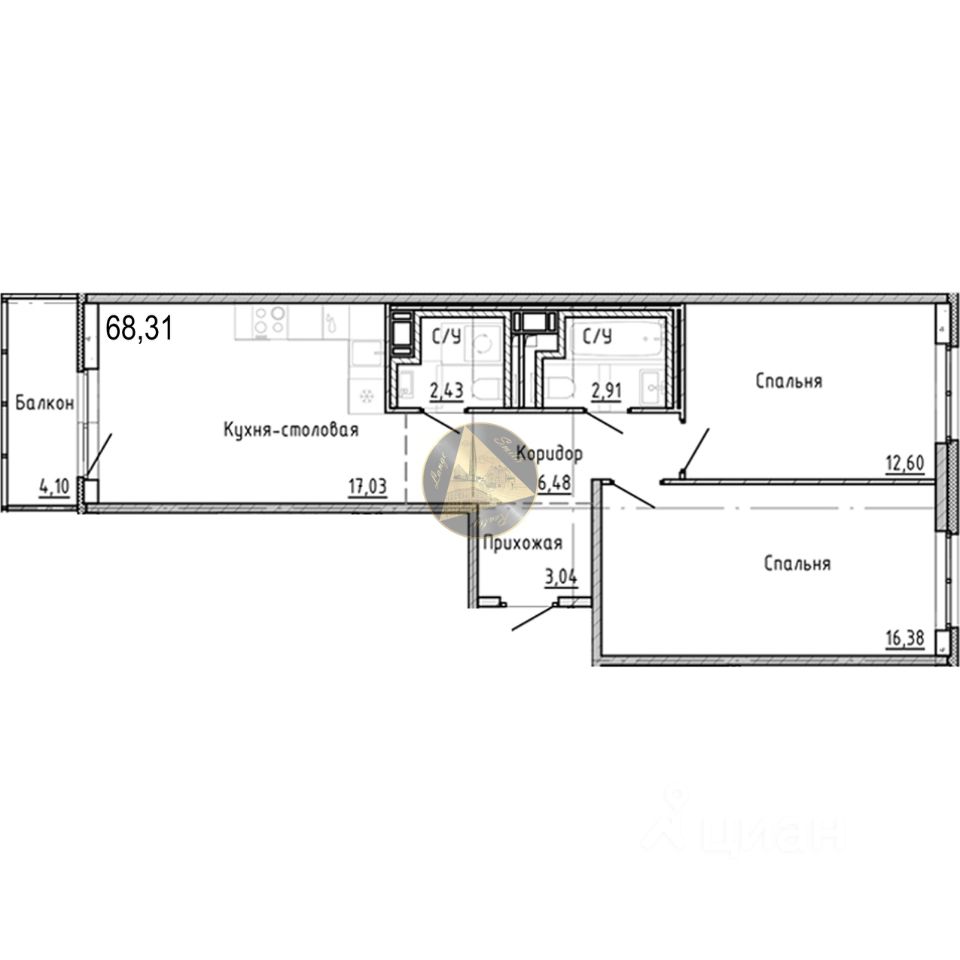 - Общая площадь квартиры 68.31 м2
