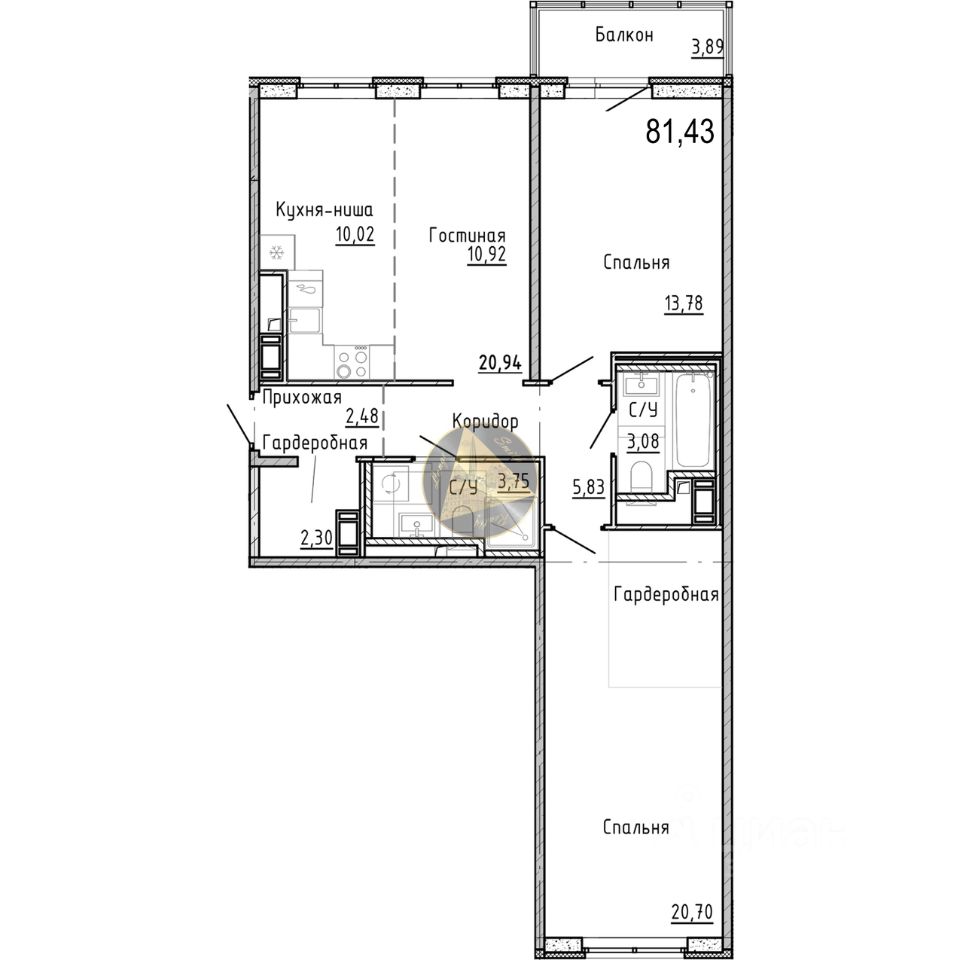 - Общая площадь квартиры 81.43 м2