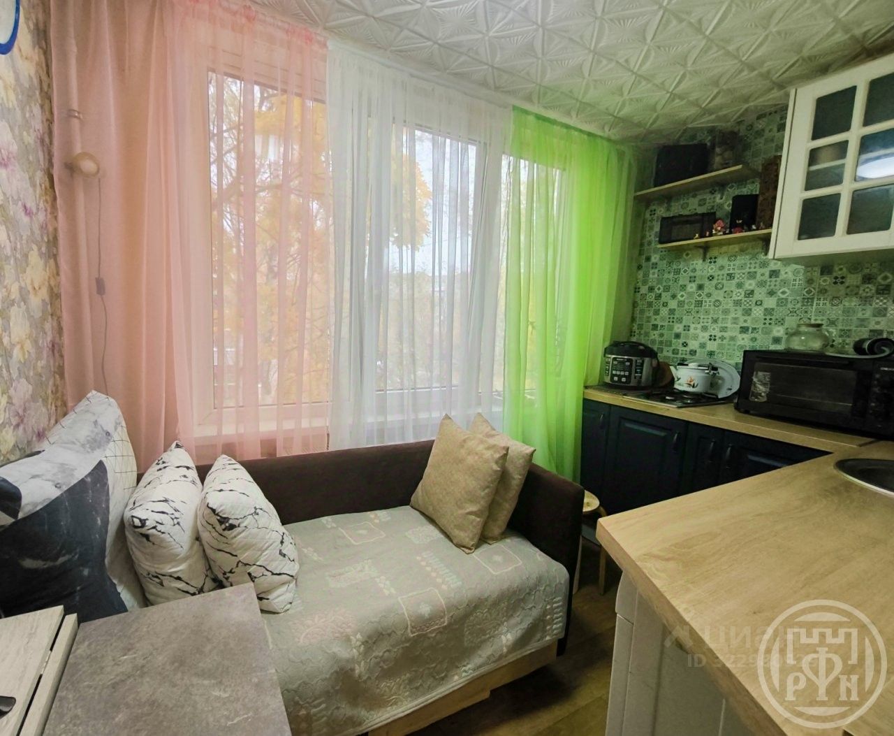 Квартира в очень хорошем состоянии,сделан качественный ремонт.Просторная прихожая,полностью оборудованная кухня.Комнаты квадратные,удобные,расположение смежно-изолированное,натяжной потолок.Фактически сделано как гостиная с диваном,просторным шкафом и отдельная спальня с большой кроватью.Практически всё,что есть в квартире останется будущим владельцам.Заезжай и живи,квартира в отличном состоянии.Санузел раздельный,выложен плиткой.Балкон застекленный,с диваном,вид в зеленый и тихий двор.Прекрасно развитая инфраструктура,до метро 10 минут пешком.Недалеко жд станция Новая Охта (Мурино),очень удобно для дачников и для выезда за город.Рядом школы,детские сады,магазины,места досуга и отдыха.Дом находится в стороне от больших дорог,поэтому тихо и спокойно.Во дворе детские и спортивные площадки,близко парк и озера.Отличное место для жизни и отдыха.