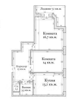 - Общая площадь 61.4 кв.м. + лоджия 7 кв.м.