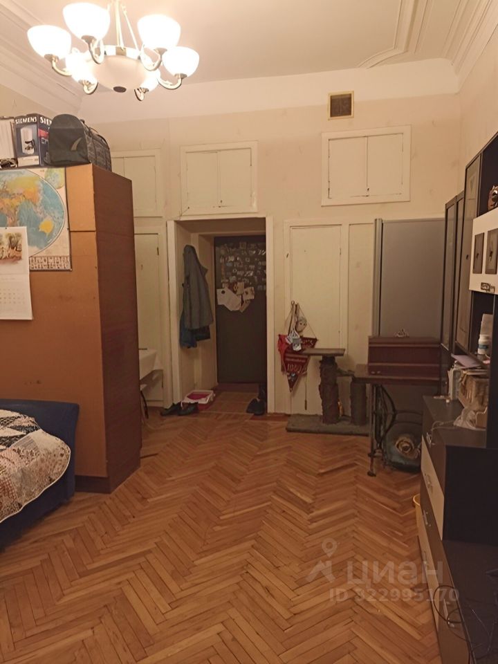 Комната прямоугольная, высокие потолки-3.5м, перекрытия -железобетонные плиты. Капитальный ремонт произведен в 1969-70году. В комнате 2 окна. Есть встроенный шкаф, пол паркет.