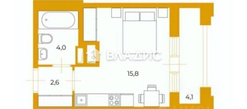 - Квартира: общая площадь — 25 кв. м, жилая — 15,8 кв. м, площадь кухни — 16 кв. м. Квартира угловая, на 7 этаже 19-этажного кирпично-монолитного дома.