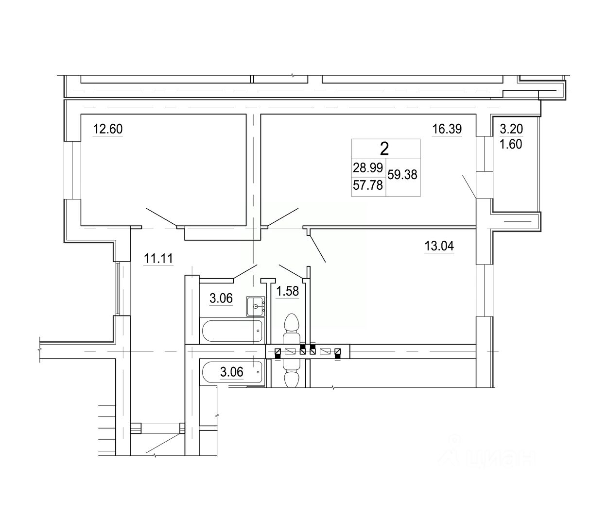 59,38 м²
