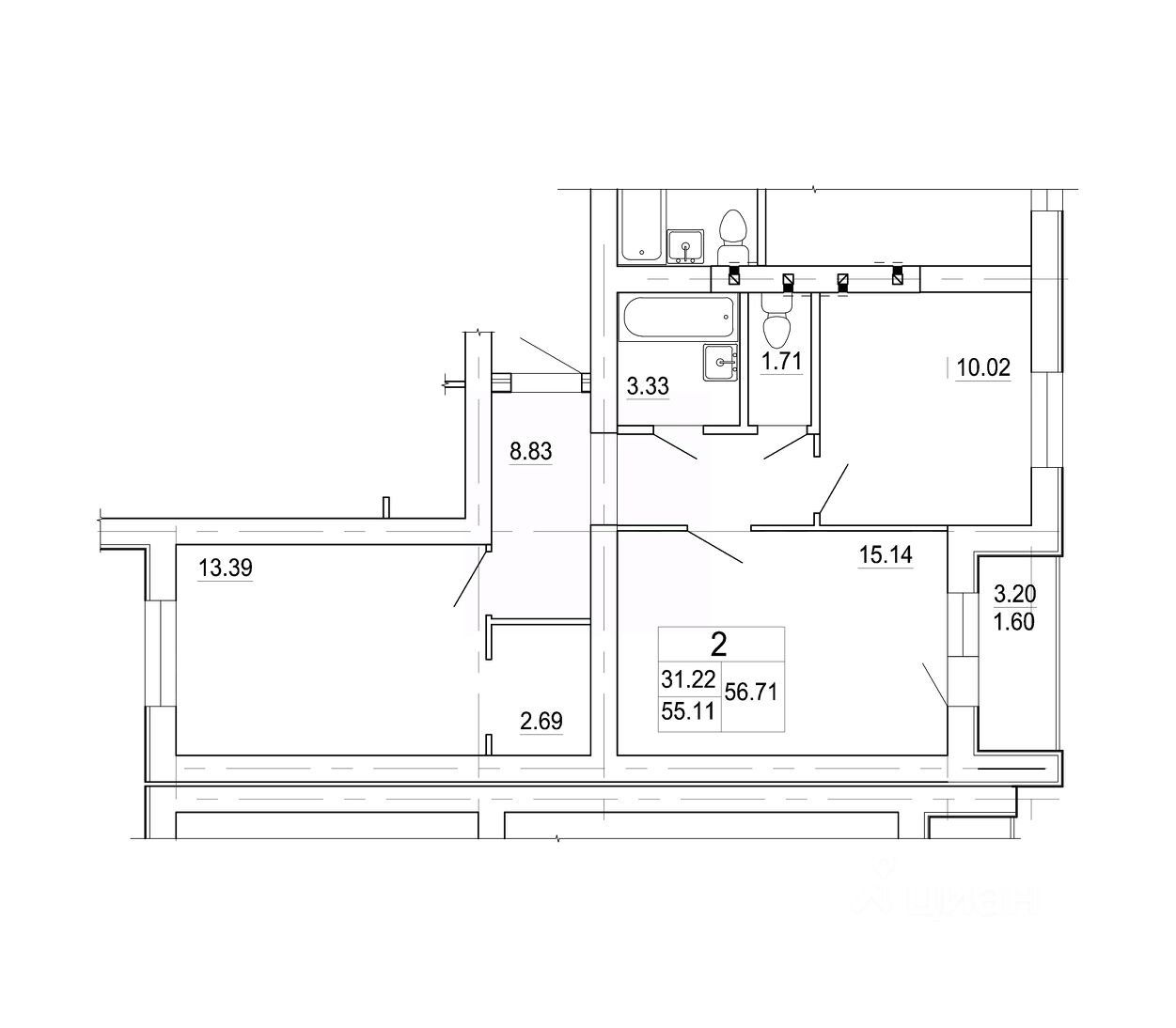 Продаётся 2-комнатная квартира в сданном доме (Корпус 2), срок сдачи: III-кв. 2024, общей площадью 56.71 кв.м., на 2 этаже. Новый жилой дом от застройщика "Промстроймонтаж" расположен по адресу: Россия, Ленинградская область, Гатчинский район, Коммунар, улица Строителей