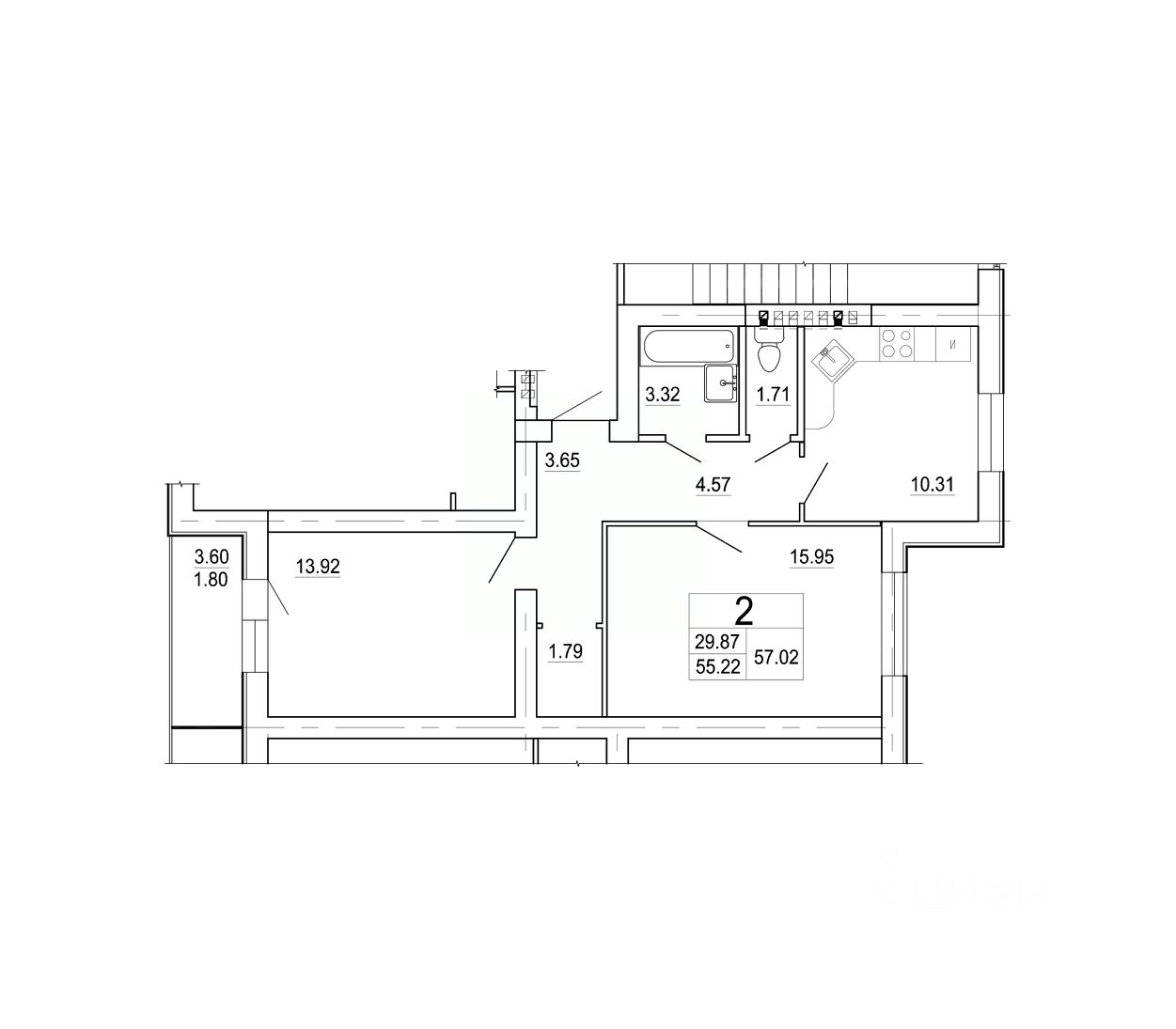 Продаётся 2-комнатная квартира в сданном доме (Корпус 1), срок сдачи: III-кв. 2024, общей площадью 57.02 кв.м., на 3 этаже. Новый жилой дом от застройщика "Промстроймонтаж" расположен по адресу: Россия, Ленинградская область, Гатчинский район, Коммунар, улица Строителей
