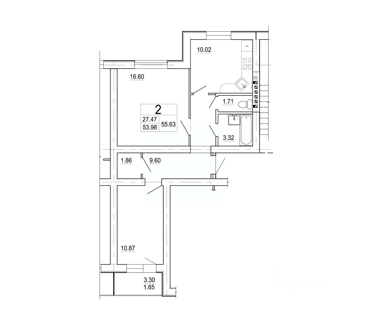 55,63 м²