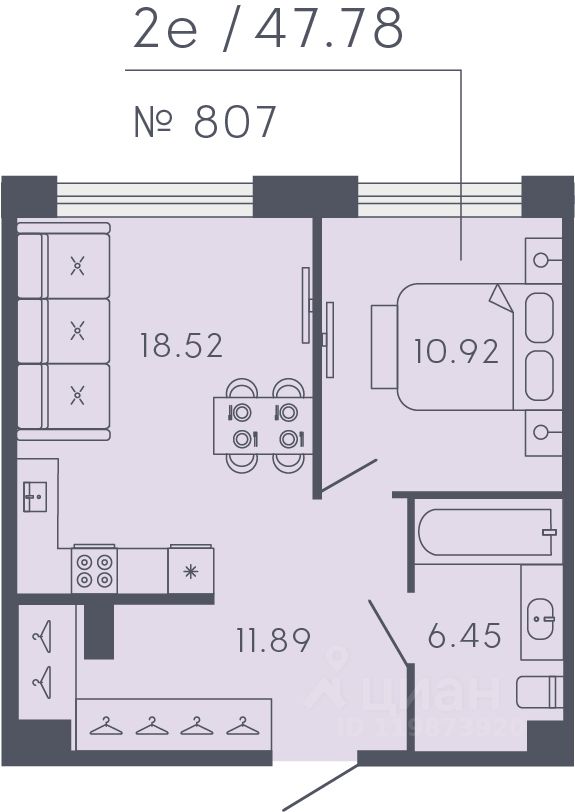 Апартамент 807 в Комплексе "17/33 Петровский остров"