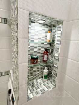 * Ниша с подсветкой и полками для душевых принадлежностей и доступом из ванной