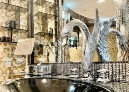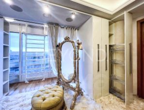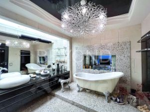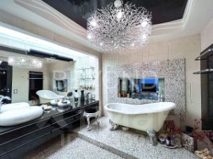 В оформлении дизайна интерьеров использованы изысканные и дорогие отделочные материалы: ценные породы дерева, паркетная доска (орех, дуб), натуральный мрамор, авторская мозаика, лепнина, оникс. В ванных комнатах установлена премиальная сантехника. Квартира оснащена системой Умный дом и дополнительной функцией охраны и безопасности. Предоставляется возможность приобрести одно парковочное место в подземном отапливаемом паркинге.