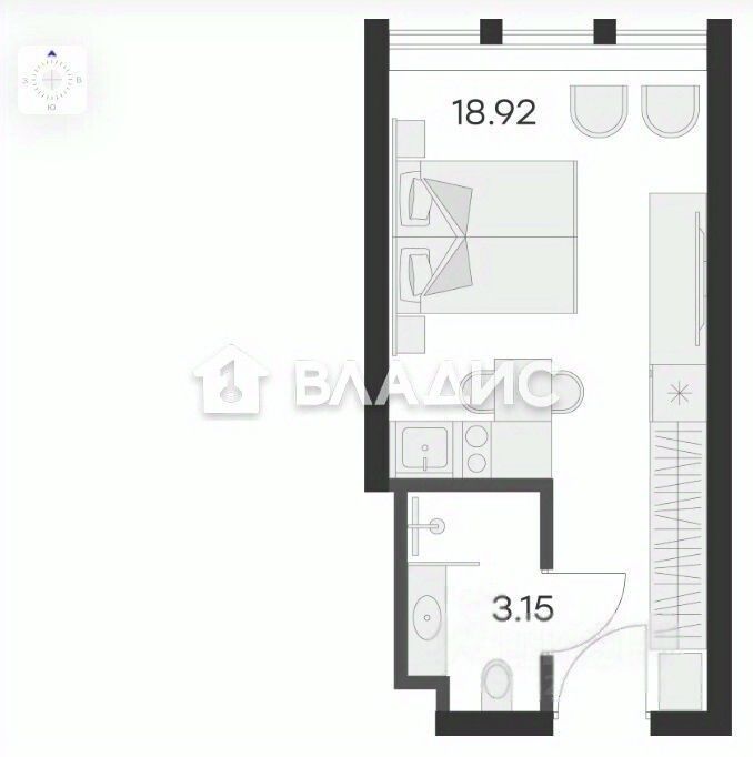 - Жилая площадь: 18,9 кв. м